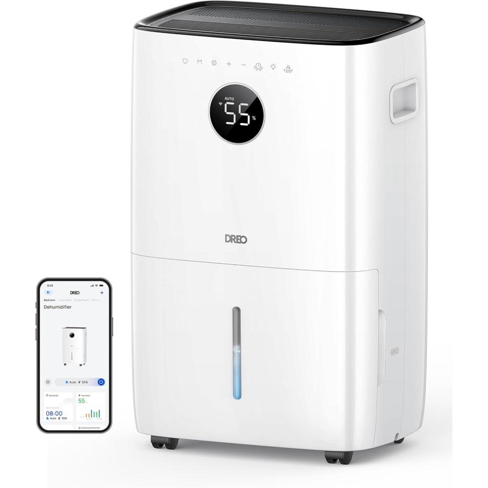 Dreo 110-Pint Smart Dehumidifier for Basement, 4500 Ft² for Large Room, 2 Gallon Water Tank, Auto/Comfort/Constant Mode Dehumidifiers for Home, Bedroom, Bathroom, with Drain Hose, White, 711S(White)