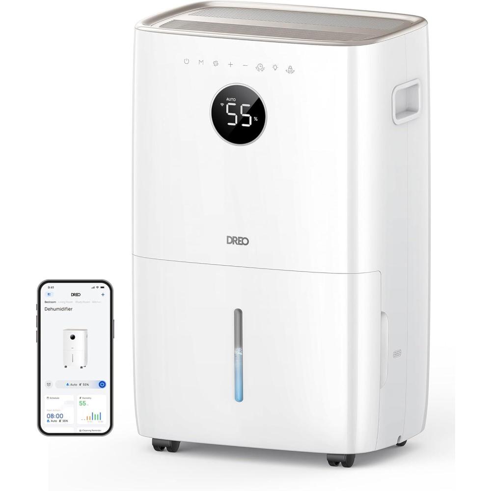More Ways to Control: Take full control with our smart dehumidifier—monitor real-time humidity, set schedules, and timer effortlessly via the DREO app, or enjoy hands-free convenience with Alexa and Google Home voice assistants.
