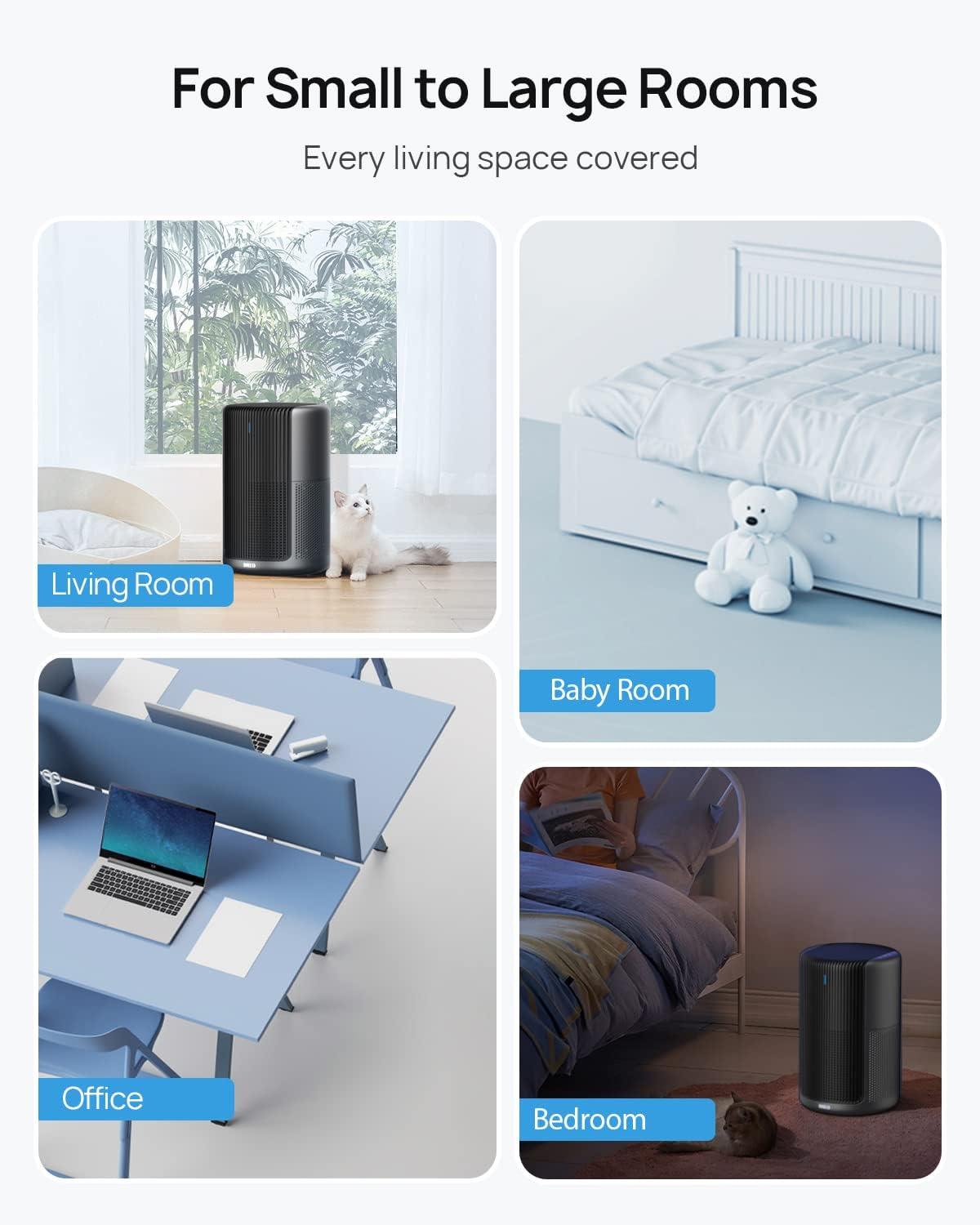 The efficient filter traps 99.985% of particles 0.3 microns and larger – including certain pet dander, dust mites, and pollen, effectively helping improve allergies. And beats a variety of allergens, providing relief for those suffering from allergies and asthma.