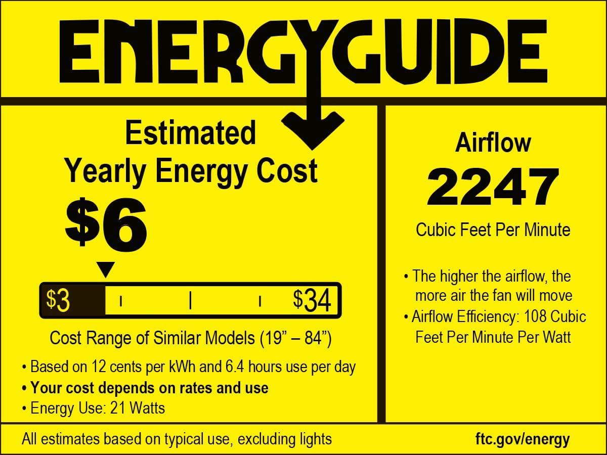 Powerfully Efficient Wind: The ceiling fan with light has DC motor, 6 speeds and up to 3400 CFM ( avg. 2247 ) with FTC-certified 50% less energy use, it's an eco-friendly, efficient choice for home.