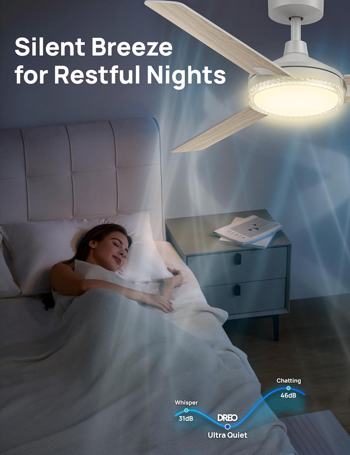 Quiet Comfort for Sleep: This bedroom ceiling fan with lights offers a calming, whisper-like 31dB breeze—ideal for light sleepers , babies, and family with just one touch.