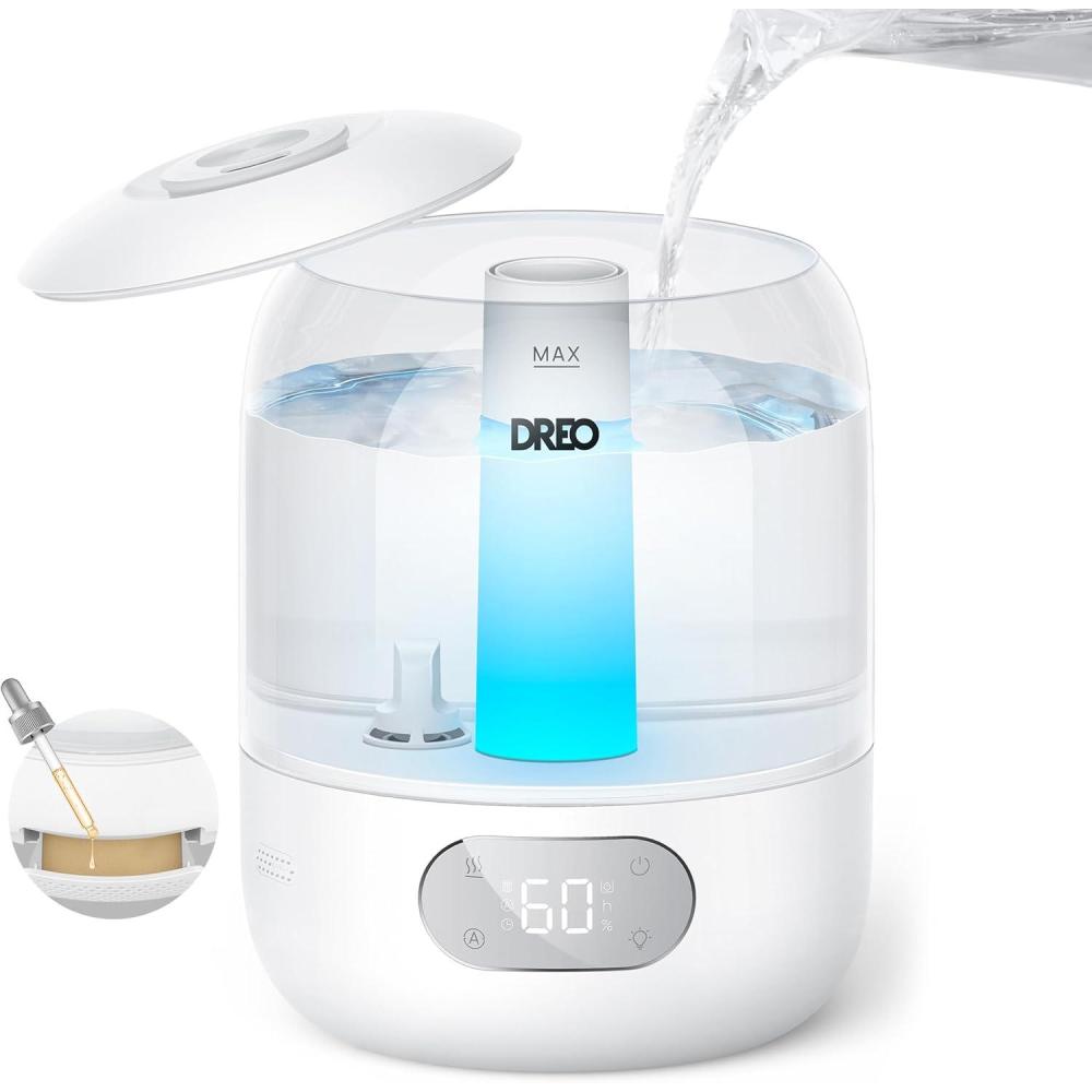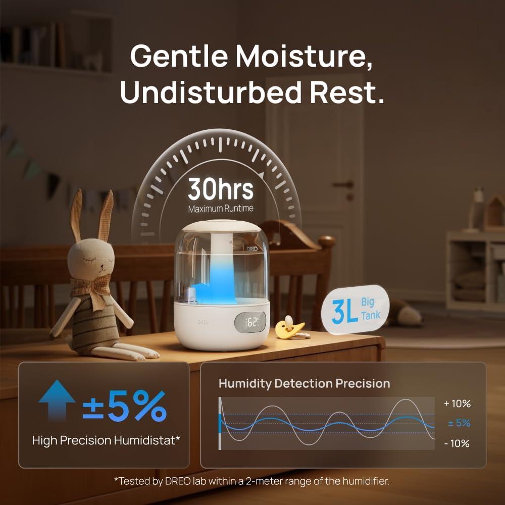 Dreo Cool Mist Humidifiers for Baby, 3L Top Fill, 26dB Quite, Ambient Indicator Light for Nursery, Less Refill, Indoor, Adjustable Nozzle, New Edition