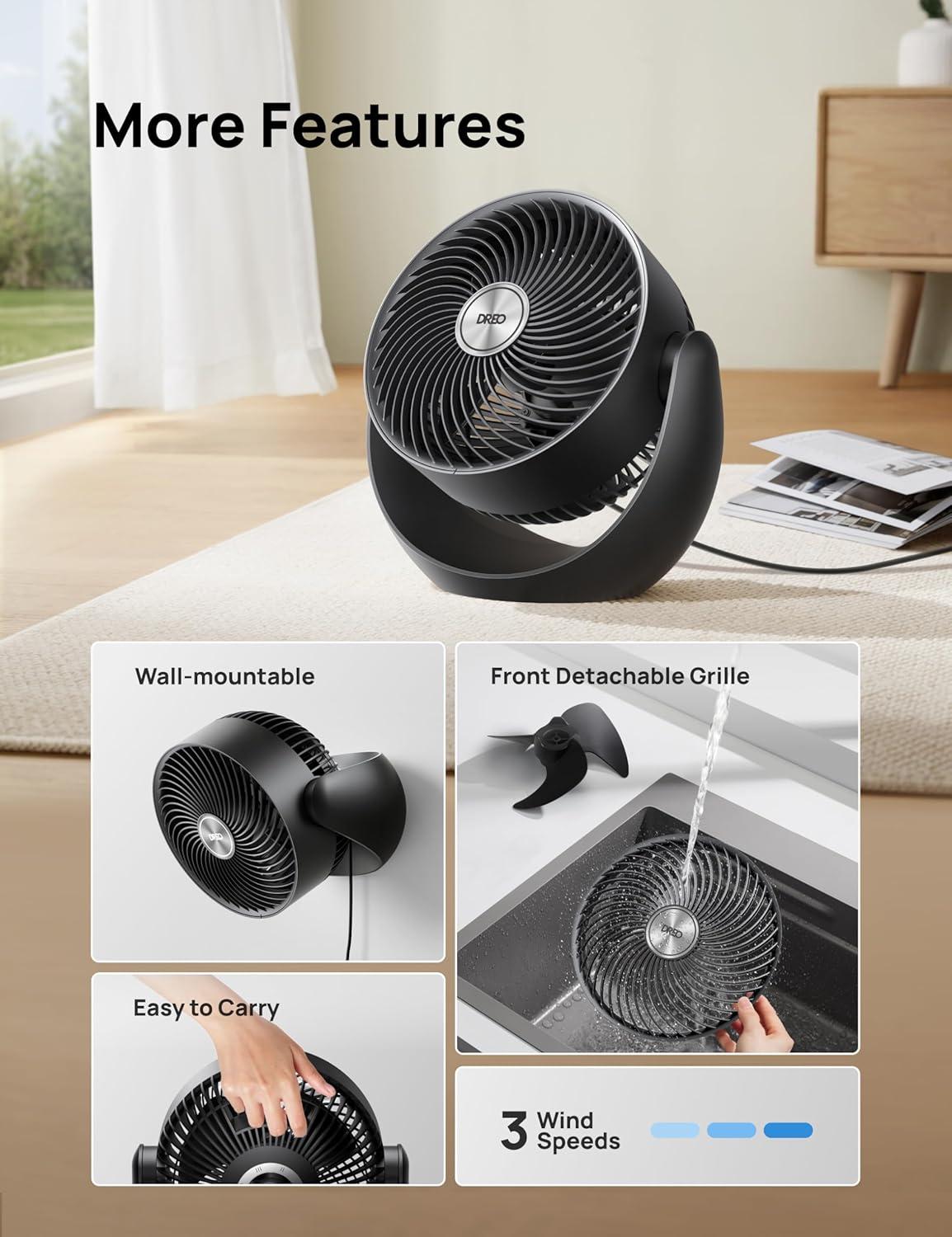 𝙏𝙖𝙞𝙡𝙤𝙧𝙚𝙙 𝙗𝙧𝙚𝙚𝙯𝙚𝙨 𝙖𝙩 𝙮𝙤𝙪𝙧 𝙛𝙞𝙣𝙜𝙚𝙧𝙩𝙞𝙥𝙨: The DREO tabletop circulator fan gives you full control over the breeze. Simply adjust the 3-speed setting with a twist of the knob, from a light wind to a stronger, cooler oscillating gust—perfect for whatever you need.