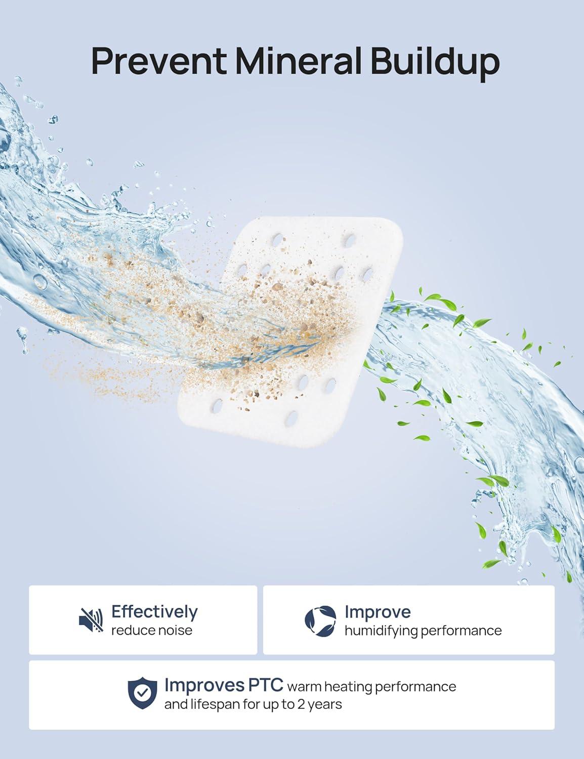 Less Limescale, Less Cleaning: By effectively capturing minerals from water, the pads prevent limescale from spreading around the humidifier, making cleaning less stressful and easier.