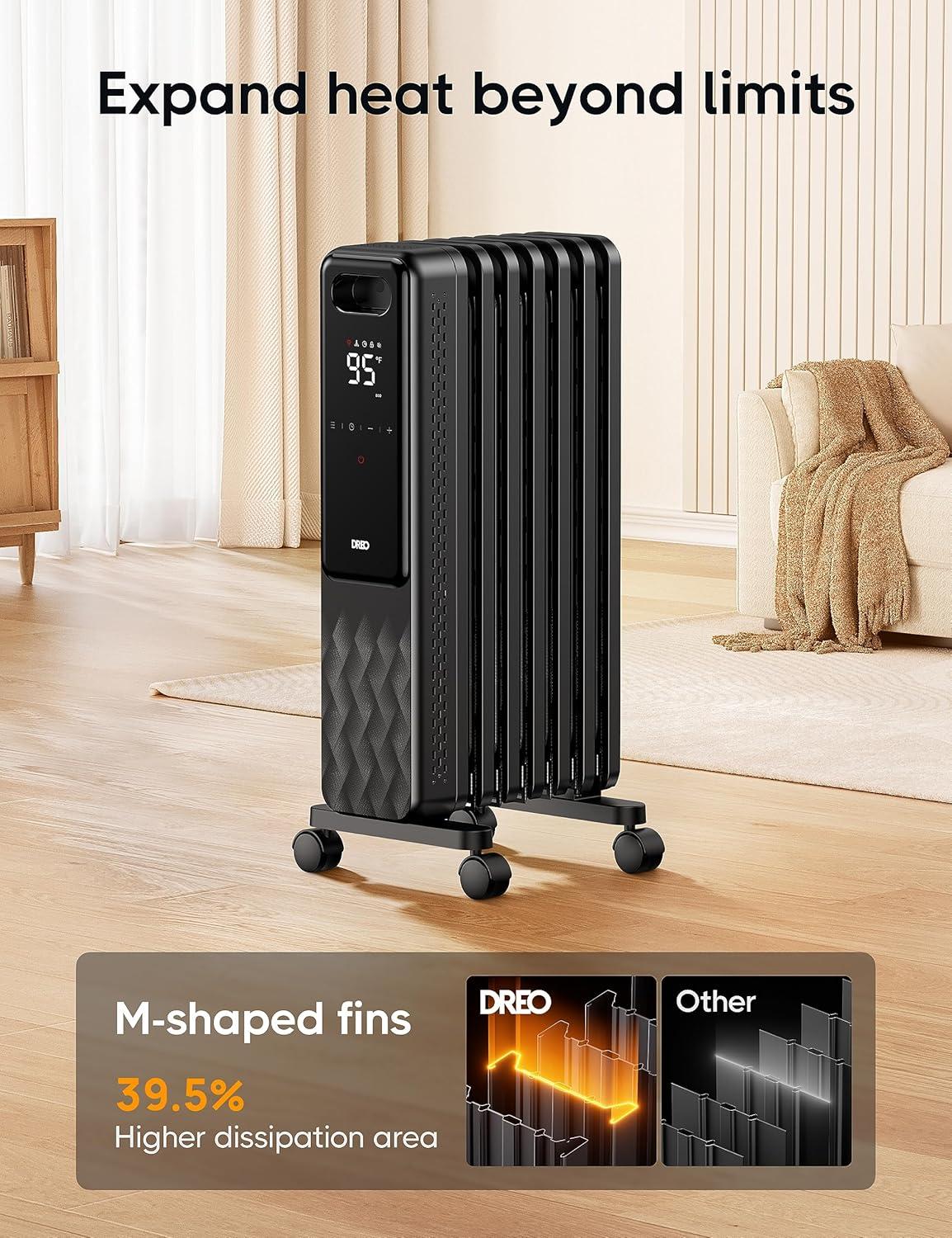360° Whole-Home Warmth: Dreo radiator heater delivers swift and silent heating at 1500W, boosting efficiency by 92.3%. Its 7 advanced fins outpace competitors by 39.49% in heat dispersion. Stay cozy with rapid, quiet, and even warmth.