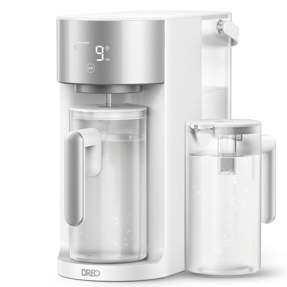 ๐๐ผ๐บ๐ฝ๐ฎ๐ฐ๐ ๐๐ฒ๐๐ถ๐ด๐ป, ๐๐ฎ๐๐๐น๐ฒ-๐๐ฟ๐ฒ๐ฒ ๐๐ป๐๐๐ฎ๐น๐น๐ฎ๐๐ถ๐ผ๐ป: With a slim 14.51″ L ร 6.73″ W ร 13.35″ H footprint, DREO countertop reverse osmosis system fits easily in kitchens, living rooms, bedrooms, or officesโno plumbing or installation needed. Just plug it in and enjoy instant pure water. The 5L tank plus two 1.1L pitchers are ideal for daily use by 3 to 4 people