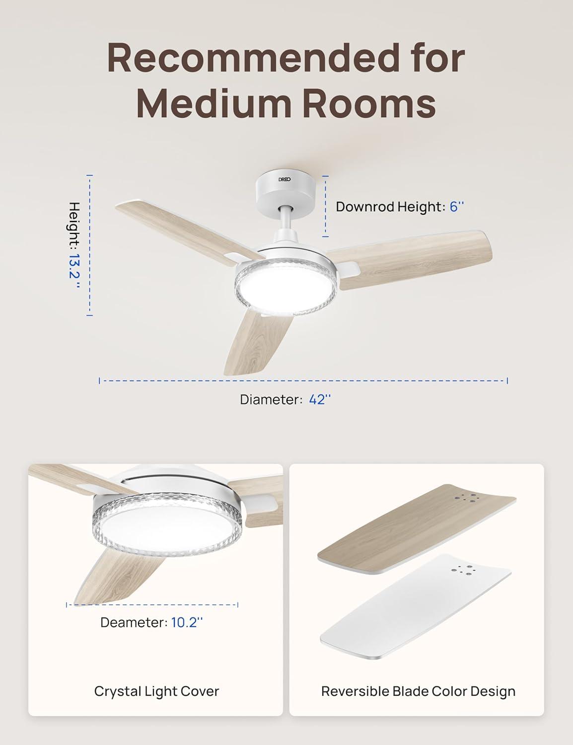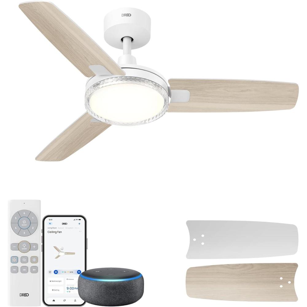 Dreo Smart Ceiling Fans with Lights, 42 Inch Black Ceiling Fan, 12 Speeds & 3 Fan Modes, Stepless Color Tones, Dimmable LED Light, 1-12H Timer, Quiet DC Motor, Remote/APP/Alexa/Wall Switch Control(White)