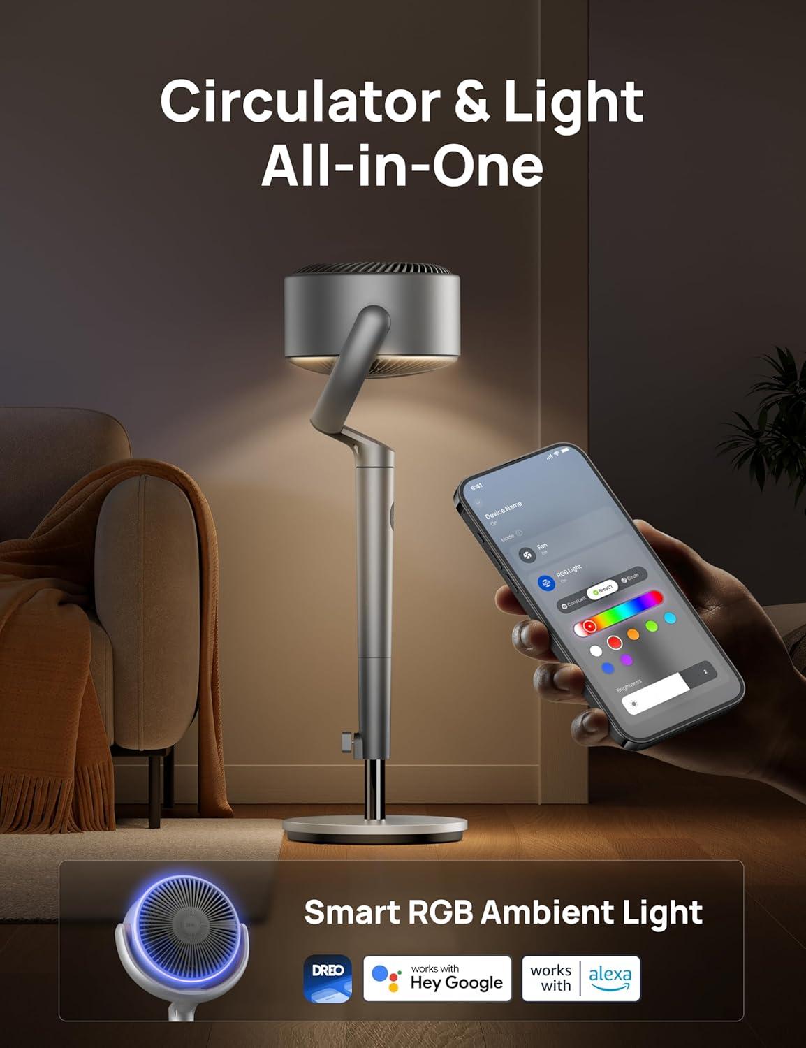 ๐๐ข๐๐ง๐ฉ 2-๐๐ฃ-1 ๐๐๐ฃ, ๐๐๐ข๐ฅ๐ก๐๐๐๐๐จ ๐๐ซ๐๐ง๐ฎ๐ฉ๐๐๐ฃ๐: Use the DREO app for smart fan, voice commands or remote control to RGB light, modes oscillation, switch speeds, set timers, and turn on Turbo mode for a powerful circulation in an instant.