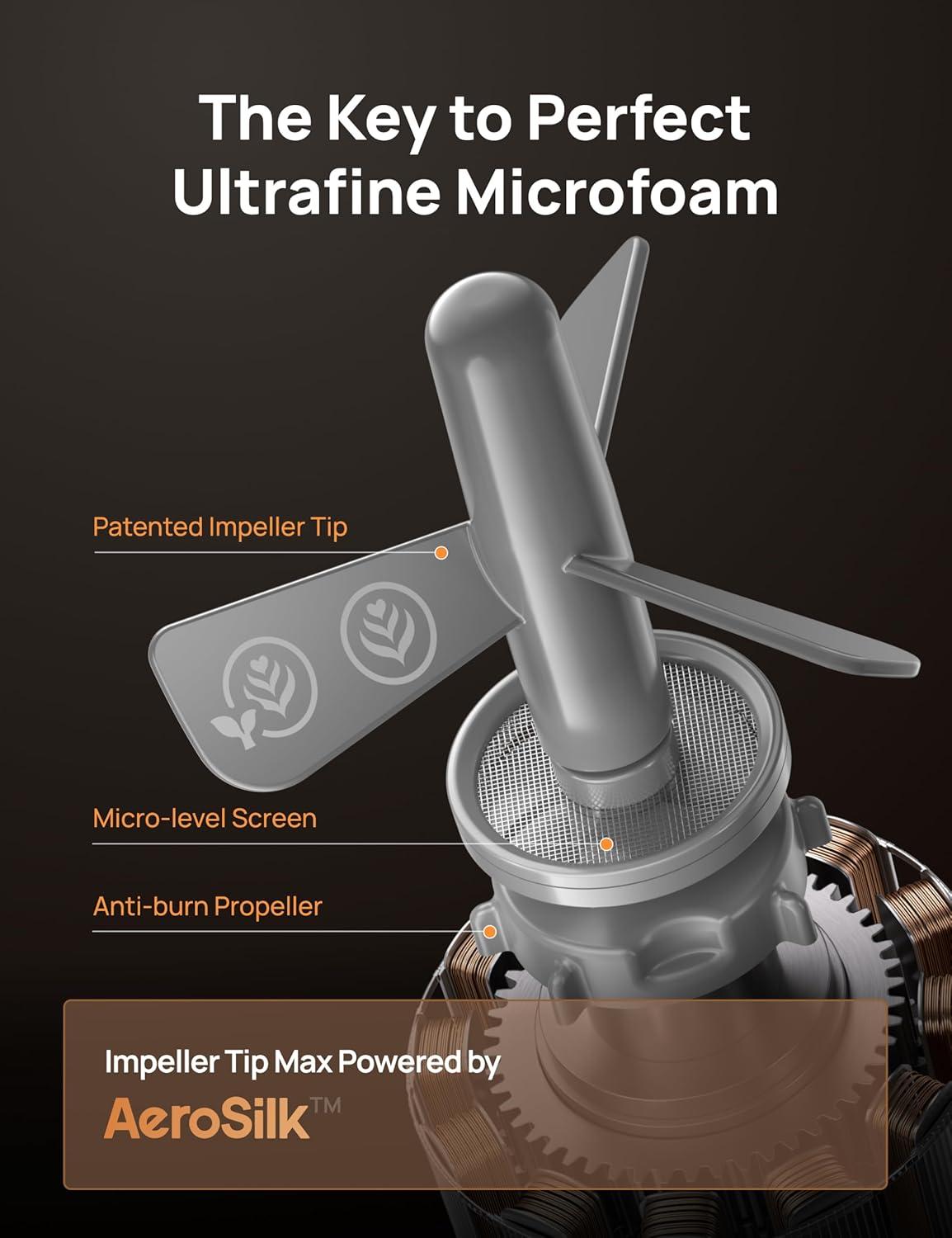 Perfect for Latte Art: The DREO patented impeller blade guides milk flow uniformly and cuts bubbles into 0.5mm microfoam, twice more fine than conventional frother tips.